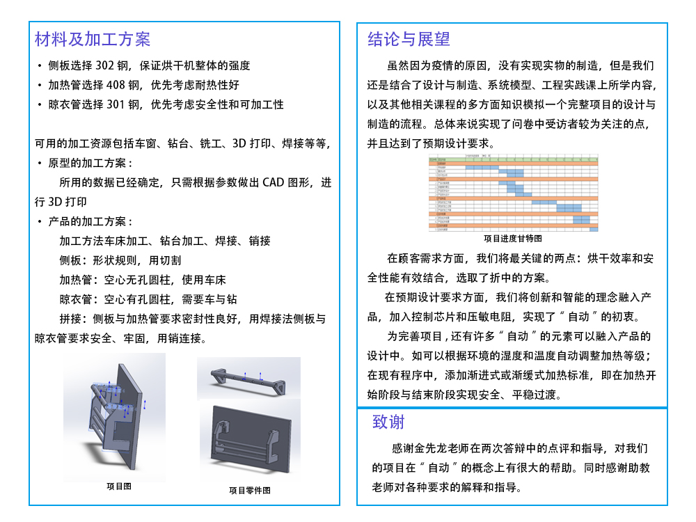 虽然因为疫情的原因,没有实现实物的制造,但是我们还是结合了设计与制造、系统模型、工程实践课上所学内容,以及其他相关课程的多方面知识模拟一个完整项目的设计与制造的流程。