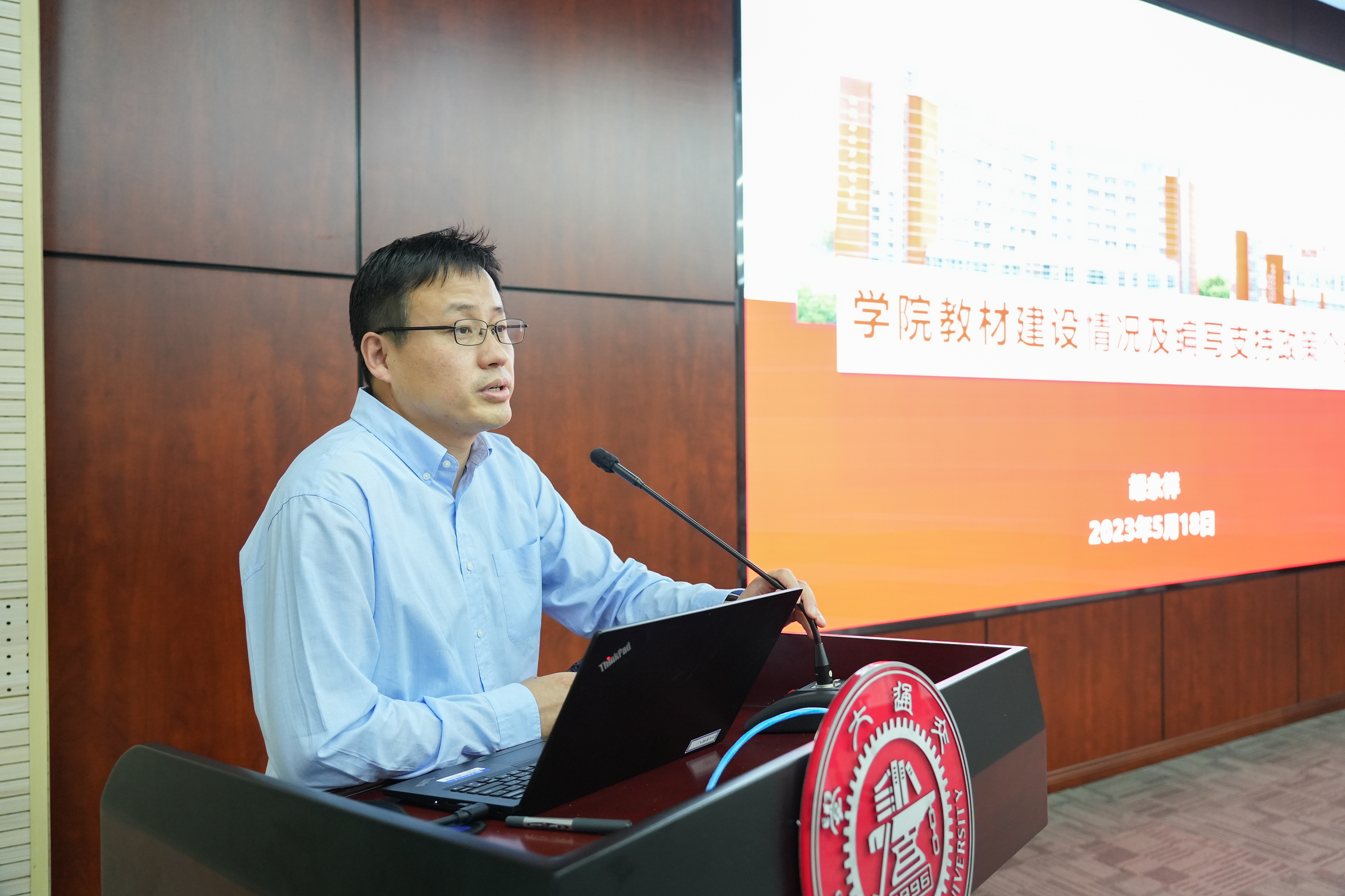 杜朝辉做总结发言,强调了教材在教书育人中的重要意义,以及学院对教材建设的重视与支持,希望大家认真对待教材建设工作,在学院传统优势学科方向的基础上,融入前沿科技知识,做好优秀教材的传承,打造更多、更经典、更高质量的教材。