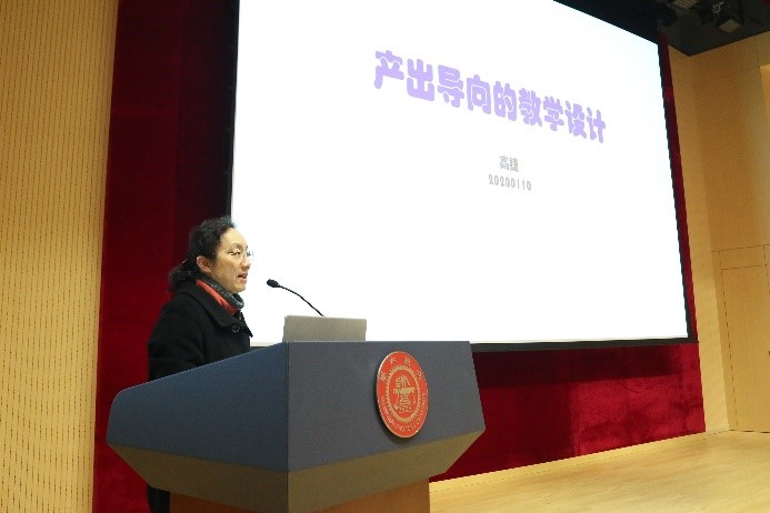 校教学发展中心顾问高捷作“产出导向的教学设计”专题报告,从传统教学模式面临的困境入手,引出“产出导向”教学设计的重要性,结合专业认证的核心理念从如何制定产出导向的专业课程体系、设计学与教的方法、设计有效学习评价方法三方面进行了系统介绍,并引用了教学设计案例进行分析解读。