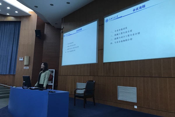 会上,王院长对本次机械动力类专业分流致辞、进行了专业分流动员,并对15级机械动力学生表达了学业学术上的期望与祝愿;胡永祥、洪芳军两位老师分别向同学们宣讲展示了机械工程、能源与动力工程两个方向不同专业的师资力量、科研实力、专业特色、以及学科成果,并介绍了同学们普遍关心的各专业未来升学、出国、就业等情况;最后,15级教学秘书黄靖涵介绍了本次专业分流的具体流程安排,并对实施细则进行了解读。