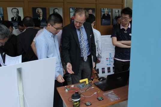 2016年6月1日,“2016SJTU-PSU/KTH国际联合毕业设计”项目展示会在威尼斯9499登录入口举行,机械动力学院28名本科生的18项国际工程项目成果参与展示评选。美国宾州法尼亚州立大学、瑞典皇家理工学院教授代表,机械动力学院党委书记杜朝辉、副院长章俊良、国际毕设指导教师,以及WELLMASTER、Tyco等知名企业代表等参加了活动。
