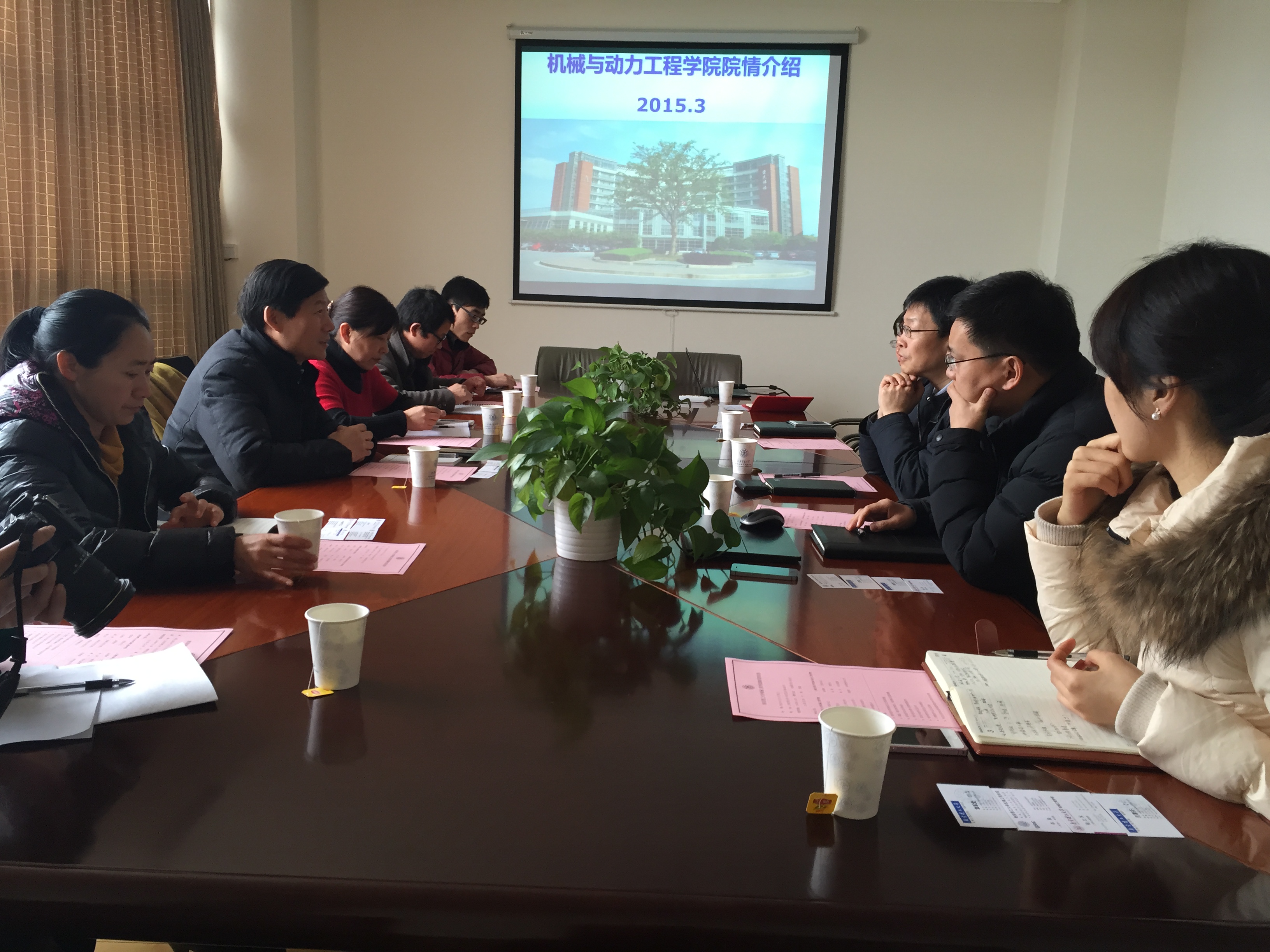 2015年3月4日,南京理工大学机械工程学院党委书记袁军堂,副院长汪惠芬一行六人来访威尼斯9499登录入口,进行交流调研。机械动力学院党委书记杜朝辉、副院长林赫、院长助理蒋丹、本科教务办主任吴艳琼出席并作交流。