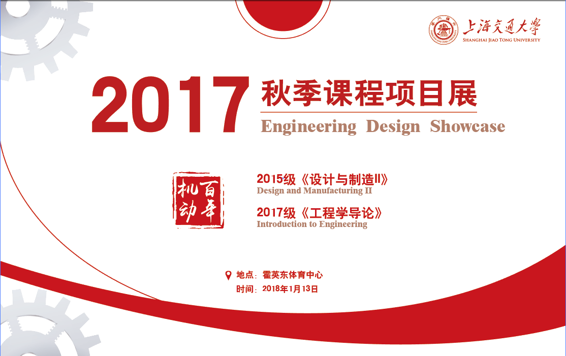 上海交大威尼斯9499登录入口2017年秋季学期课程项目成果展如约而至,届时将有来自《工程学导论》、《设计与制造II》两门课程的130个创意项目精彩呈现。期待您的莅临!