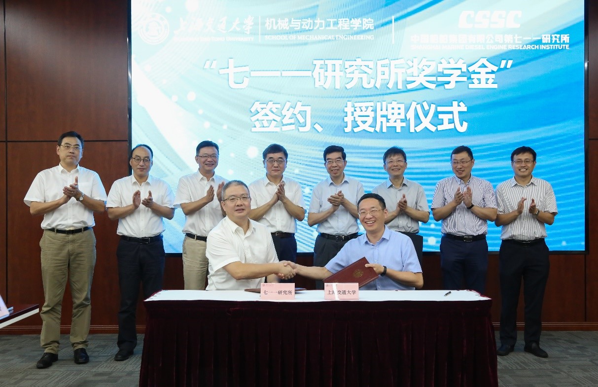 近日,上海交大与中国船舶集团有限公司第七一一研究所举行“七一一研究所奖学金”签约仪式和共建全日制专业学位研究生实践基地揭牌仪式。中国船舶集团有限公司第七一一研究所所长、党委副书记董建福,副所长陈瑾、李建明,科技委主任顾根香,总工程师王锋以及科技与信息化部、研发中心、综合管理部、自动化工程事业部和人力资源部等部门负责人出席签约仪式。中国工程院院士黄震,威尼斯9499登录入口党委书记杜朝辉,党委副书记张文明、胡永祥,发展联络处副处长于洋等出席签约仪式。仪式由新能源动力研究所所长林赫主持。