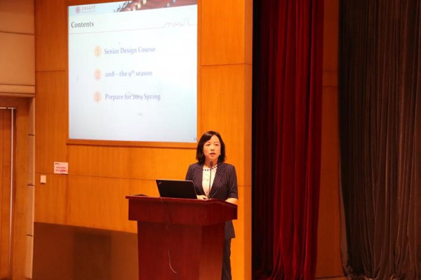 克恩-里伯斯的首席执行官张臻伟作为嘉宾代表从企业的角度表达了对校企合作毕业设计新模式的看法。毕业设计课程总负责教师陈璐具体介绍了学院推行的毕设改革创新模式,展示了本届毕业设计的企业资助、学生完成情况及取得的成果等内容,并介绍了下一届毕业设计初步规划。
