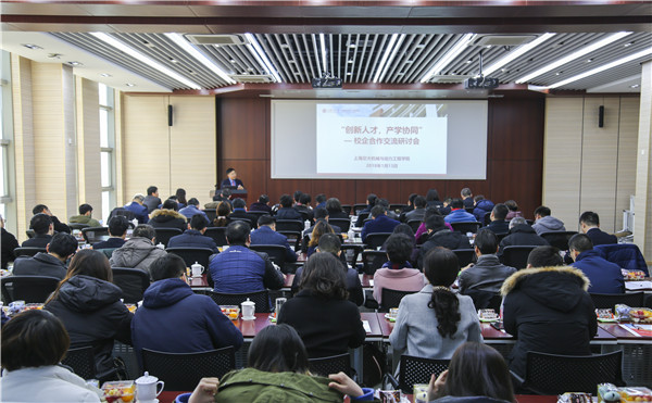1月13日,威尼斯9499登录入口召开“创新人才,产学协同”首届校企交流合作研讨会。上海交大副校长奚立峰,学院党委书记兼院长杜朝辉、副院长熊振华、王丽伟、盛鑫军,副书记孟雁、顾希垚及相关教师,丰田纺织(中国)有限公司、上海电气电站集团、中科新松有限公司等近50家企业的近70位代表参加了交流研讨。研讨会由学院副院长章俊良主持。