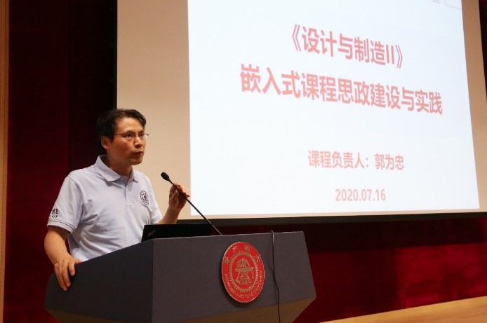 郭为忠针对《设计与制造II》嵌入式课程思政典型案例做分享报告,主要介绍了课程教学改革背景、教学设计、建设情况及实践成效,认为应结合专业特点及项目式教学改革理念,以“学生为中心”,同时开展课堂教学与项目指导主线工作,在课程中强化学生工程伦理教育、培养学生工匠精神、激发学生的家国情怀与使命担当,将课程思政融入课堂教学建设全过程,实现思政点、知识点与能力点三点合一。