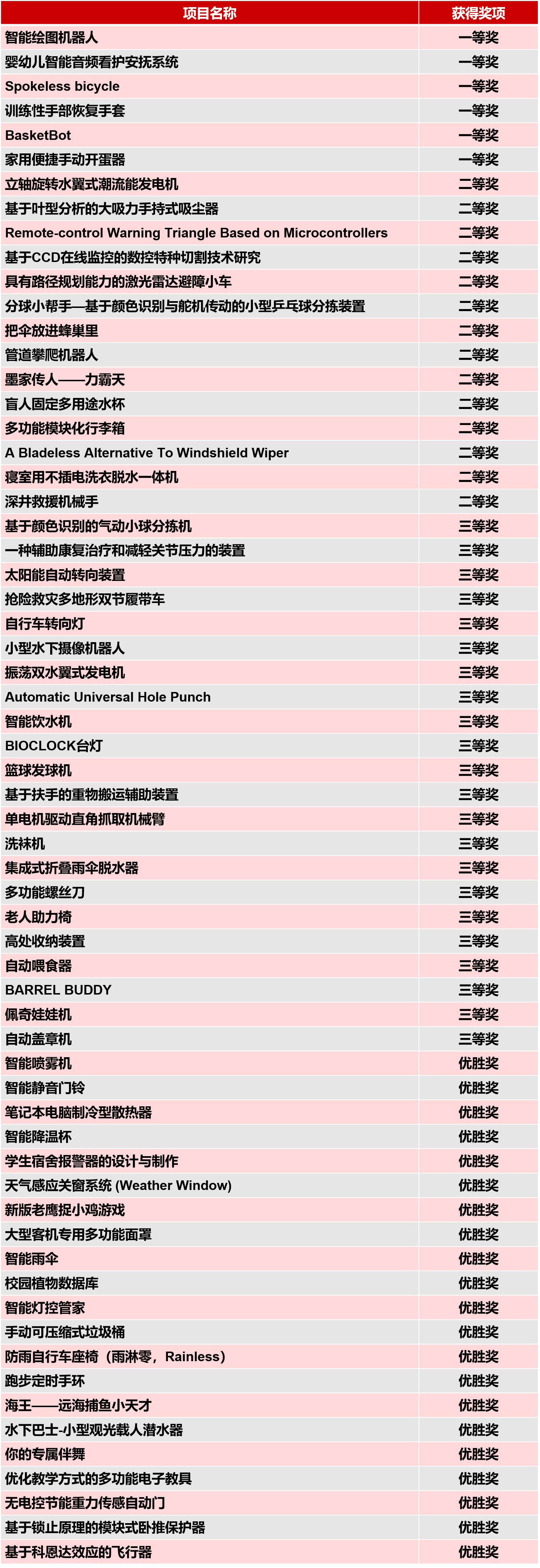 附获奖项目清单: