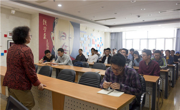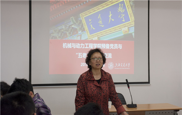 宋华芬从交通大学的历史讲起,如数家珍,深情讲述了老一辈科研工作者怀着理想和信念脚踏实地、勤勤恳恳,为国家国防建设事业艰苦攻关的历程。从燃气轮机到航空发动机,再到互联网的快速发展和最近的中兴事件,宋华芬将专业知识与当下热点相结合,告诉预备党员同学,改革开放40年来,国家建设事业取得了举世瞩目的成就,中国大型重机的发展,靠的是国家的大力投入和科研人员紧密的团队合作,单打独斗是不行的。在与同学的交流中,她也向同学们提出三点期望,一是珍惜在交大接受教育的机会以及科技发展带来的便捷;二是打好专业基础的同时也要拓宽知识面;三是要向老党员、老干部、老前辈学习,学习他们身上敬业爱国、刻苦钻研的精神。她鼓励同学们在潜心学习科研的同时,关注党和国家的方针政策,读懂中国,认识世界,树立家国行业情怀,不忘初心、牢记使命,做有理想、有本领、有担当的新时代大学生。