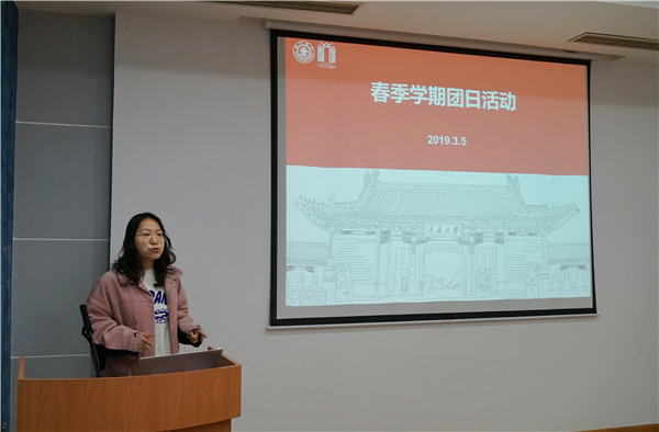 游佳朋以亲切的寒暄开场,并为在场团支书详细地介绍了团组织近期的工作事项。首先,她从时间、要求、注意事项等方面讲述了国旗升降安排,并解答了部分同学的疑惑。在总括秋季第一次团组织生活事宜之后,她还对具体内容进行了逐一细致讲解。她就团日活动筹备提出“结合五四运动100周年”的新希望,又简要介绍了团员教育评议和团支部集中换届、团推优事宜,引发热烈讨论。