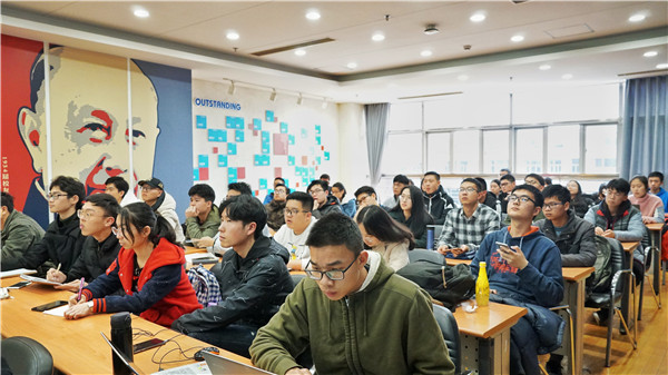 官芷凌负责介绍团风大赛。她以往年优秀作品开场,引发现场共鸣,生动有趣地介绍了团风大赛的具体要求、评分规则,并且一一回答在场同学的疑问。