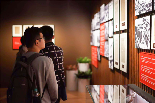 怀着无比崇敬的心态,走进展厅,最先印入眼帘的是一张烫金的《义勇军进行曲》五线谱浮雕,一条条笔直的五线谱和一颗颗跃动的音符。《义勇军进行曲》是影片《风云儿女》的主题曲,电影《风云儿女》是在上海创作、拍摄和首映的。由现场志愿者引导,培训班学员们依次参观了序厅、国歌诞生厅、国歌纪念厅及我和国歌厅,在现场伴有浓烈的爱国主义氛围的歌曲与短片的吸引下,同学们不时停下阅读观看。