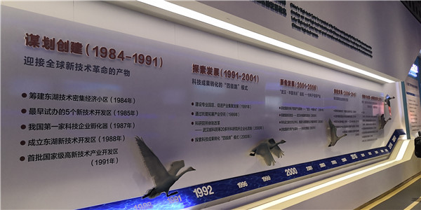 7月18日上午,实践团成员首先来到光谷展示中心了解其发展历程。讲解员带领成员们来到了独具风格的播放厅,这里滚动播放着3D视频宣传片,惊艳的视频效果展示了“中国光谷”的高科技创业成果。沿着环型走廊依次摆设着各式展板和展台,同学们跟随讲解员参观了光纤预制棒、激光发生器、白车身激光焊接系统、集成电路芯片等科技尖端产品。
