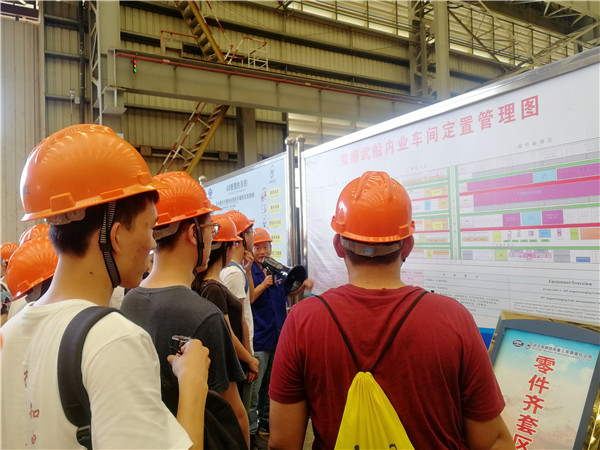 后日,实践团队抵达了湖北省武汉市新洲区的武汉双柳武船重工有限责任公司,负责人带领大家参观了武昌船舶重工集团有限公司的历史展板和经营的各类产品模型。武船立足武汉总部、武汉新洲双柳、青岛海西湾三大经济基地,形成九大板块,领域涵盖军工、军贸、公务船舶、海工船舶、海工装备、桥梁装备、高层钢结构、能源装备、豪华游艇,实现了船舶与非船产业的协调发展。