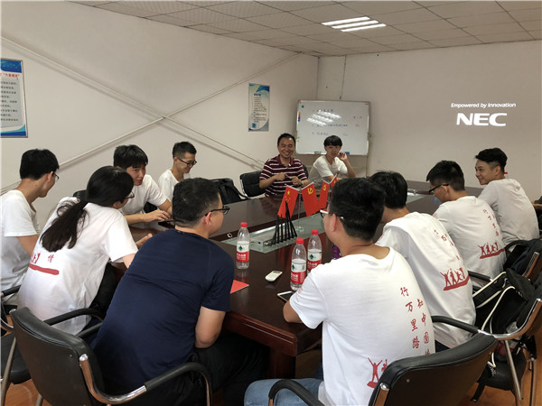 下午,在湖北校友会秘书长、机械动力学院84届校友左同兴学长的带领下,实践团一行人来到了武汉蓝辉机电设备有限公司参观走访。在座谈会中,左学长向大家介绍了公司的主要业务,涉及汽车行业、核电行业等非标准设备的设计、制造和服务,船舶与海洋工程设备控制系统的设计、开发和服务等,以及商业模式的创新,提供智能容器共享交换平台租赁服务。左学长寄语大家,作为一名交大人,要志存高远,将个人的理想追求与祖国的发展需求相结合,为国家的建设贡献自己的力量。