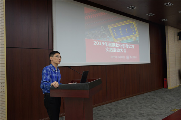 6月21日,威尼斯9499登录入口2019年暑期就业引导实习实践启动大会在学院振华会议室召开。21个实践团全体成员近100人参加会议,会议由职业发展中心主任阮海涛主持。