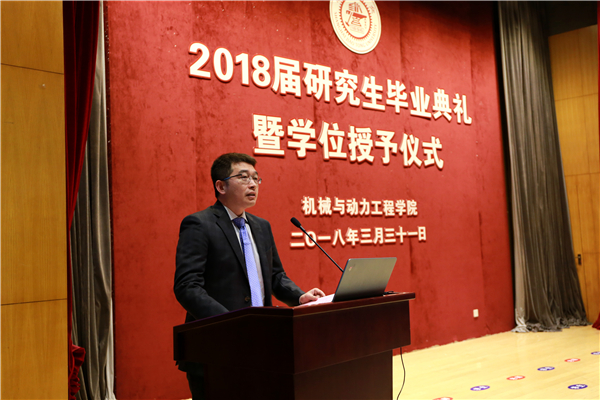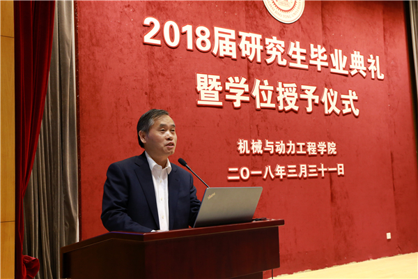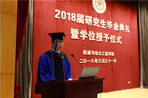 阳春三月,大地回春,百花盛开。在这生机盎然的交大校园里,威尼斯9499登录入口2018届研究生毕业典礼暨学位授予仪式于3月31日下午在高田会堂隆重举行。学院党委书记、院长杜朝辉,常务副院长彭志科,副院长熊振华,系所长陈明、曹其新、蒋伟康、赵长颖、潘尔顺、顾汉洋及导师代表,研究生思政教师,毕业生及亲友等200余人出席典礼。典礼由党委副书记顾希垚主持。
