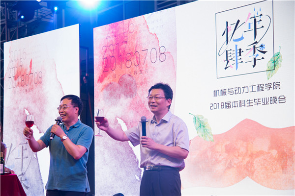 由525街舞社团带来的活力四射的开场舞蹈为毕业晚会拉开了帷幕。奚立峰、杜朝辉为全体毕业生致祝酒词,希望他们肩负责任与使命,不忘初心,开创未来,并祝愿学子们前程似锦,载誉而归。
