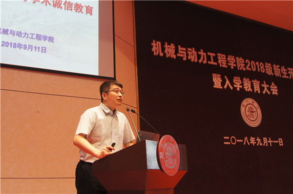 9月11日下午,威尼斯9499登录入口2018级研究生新生开学典礼暨入学教育大会在陈瑞球楼报告厅举行。院党委书记、院长杜朝辉,常务副院长彭志科,副院长熊振华,院党委副书记顾希垚,振动、冲击、噪声所所长蒋伟康,重大装备设计与控制工程研究所所长高峰,机电设计与知识工程研究所所长彭颖红,内燃机所党支部书记邓康耀,热能工程所所长范卫东,工程热物理研究所所长赵长颖,制冷与低温工程研究所副所长黄永华,燃料电池所所长章俊良,工业工程系主任潘尔顺,核科学与工程学院院长顾汉洋,院研究生教务办主任蔡小春,兼职思政、内燃机所韩东,院实验室安全督导刘国庆,校保卫处治安科杨立志,院研究生教务办、研究生思政办老师和全体2018级研究生新生参加典礼。典礼由研究生思政办陈旦玥主持。