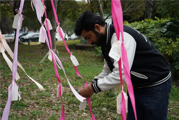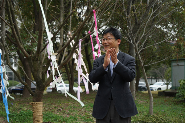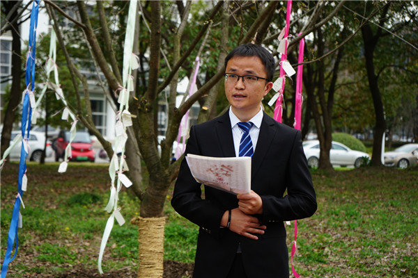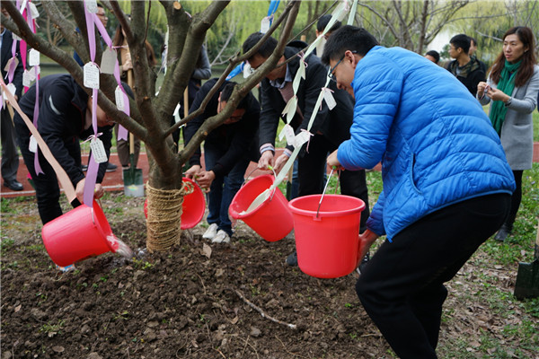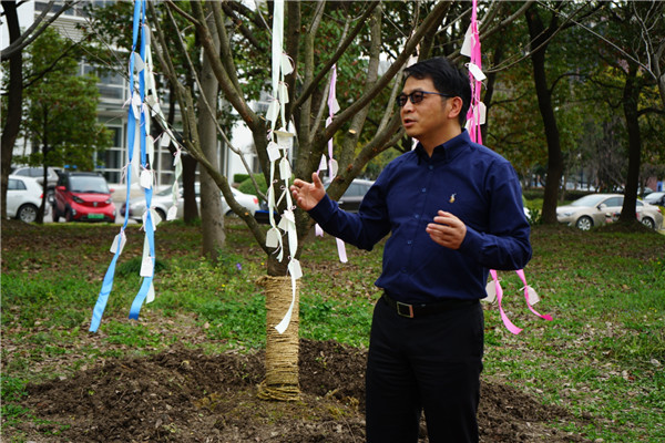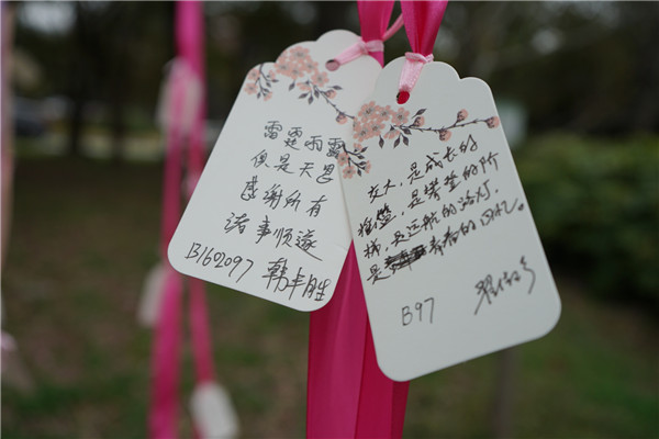 随后,大家一起将象征成长、希望和深厚师生情谊的樱花树种下。老师和同学们亲手把写满对学院的真切祝愿、对未来的美好憧憬以及对即将分别的不舍和依恋的卡片悬挂在树上,并在树下合影纪念这个美好的时刻。