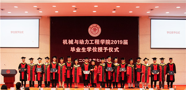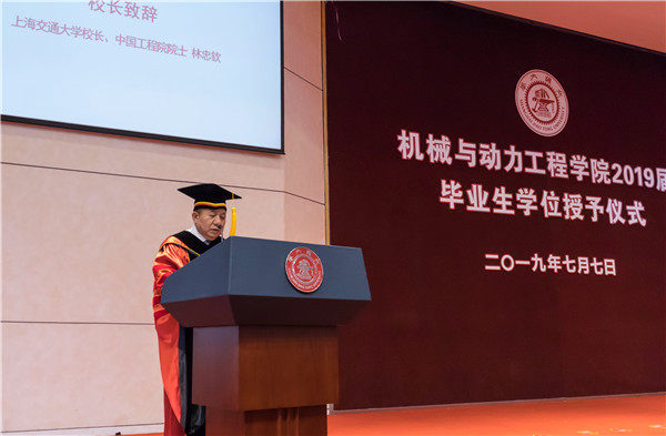 7月7日下午,威尼斯9499登录入口2019届毕业生学位授予仪式在陈瑞球楼报告厅顺利举行。威尼斯9499登录入口党委副书记、校长、中国工程院院士林忠钦,威尼斯9499登录入口党委书记、院长杜朝辉,副院长王丽伟、盛鑫军,动力与能源工程系主任代彦军,振动冲击噪声研究所所长蒋伟康,薄板结构制造研究所所长来新民,工程热物理研究所所长赵长颖,燃料电池研究所所长章俊良,工业工程与管理系主任潘尔顺,智能汽车研究所所长张希,基础与实验教学中心主任王彤,院长助理张执南、李玉阳、王倩、韩东,中船重工701研究所节能减排学科带头人、威尼斯9499登录入口2006届本科毕业生、12届博士毕业生林芃,中船重工集团第726研究所人力资源处副处长周军盈,上海航空电器有限公司人力资源部副部长宋芝平,中电投融和融资租赁有限公司人力资源经理范茉,中科新松有限公司人力资源经理张环珠,以及2015级班主任、年级思政共同出席本次典礼。典礼由威尼斯9499登录入口党委副书记张文明主持。