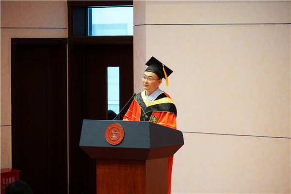 杜朝辉带同学们回顾了大学四年中具有代表性的时刻,并介绍了本届优秀毕业生的大致去向。杜朝辉建议同学们要永远保持好奇心,把学习当作终身的习惯;要砥砺进取之心,把奋斗当作前进的动力;要涵养爱国之心,把报国当作自己永恒的追求。