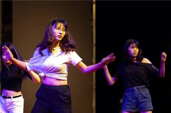 525街舞协会沈佳韵等同学带来精彩舞蹈展现出的青春活力瞬间带动了全场。