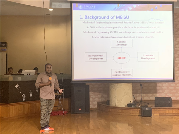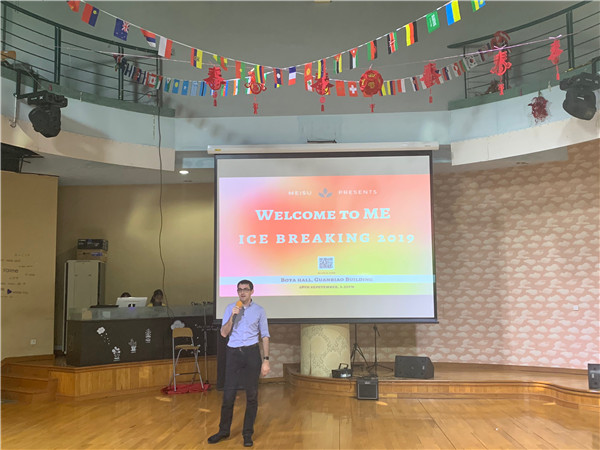 活动伊始,主持人Zach对新进留学生同学表示了热烈的欢迎。随后留学生会主席Noman代表留学生会进行发言,他从留学生会的建立背景、组织架构以及各部门职能等三个方面对协会进行了全面的介绍,他表示协会将致力于搭建一个沟通交流的平台,为留学生同学们做好服务工作。