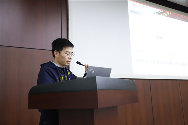 林秀娟首先对本科生班主任工作进行总结,汇报了工作沙龙组织、日常工作开展、特色班级活动及班主任考核条例修订等工作情况,就本年度本科生班主任考核结果进行了详细分析。郭莉汇报了研究生班主任队伍组建、制度建设、特色工作和满意度评价结果,重点剖析了存在的问题和拟解决途径。