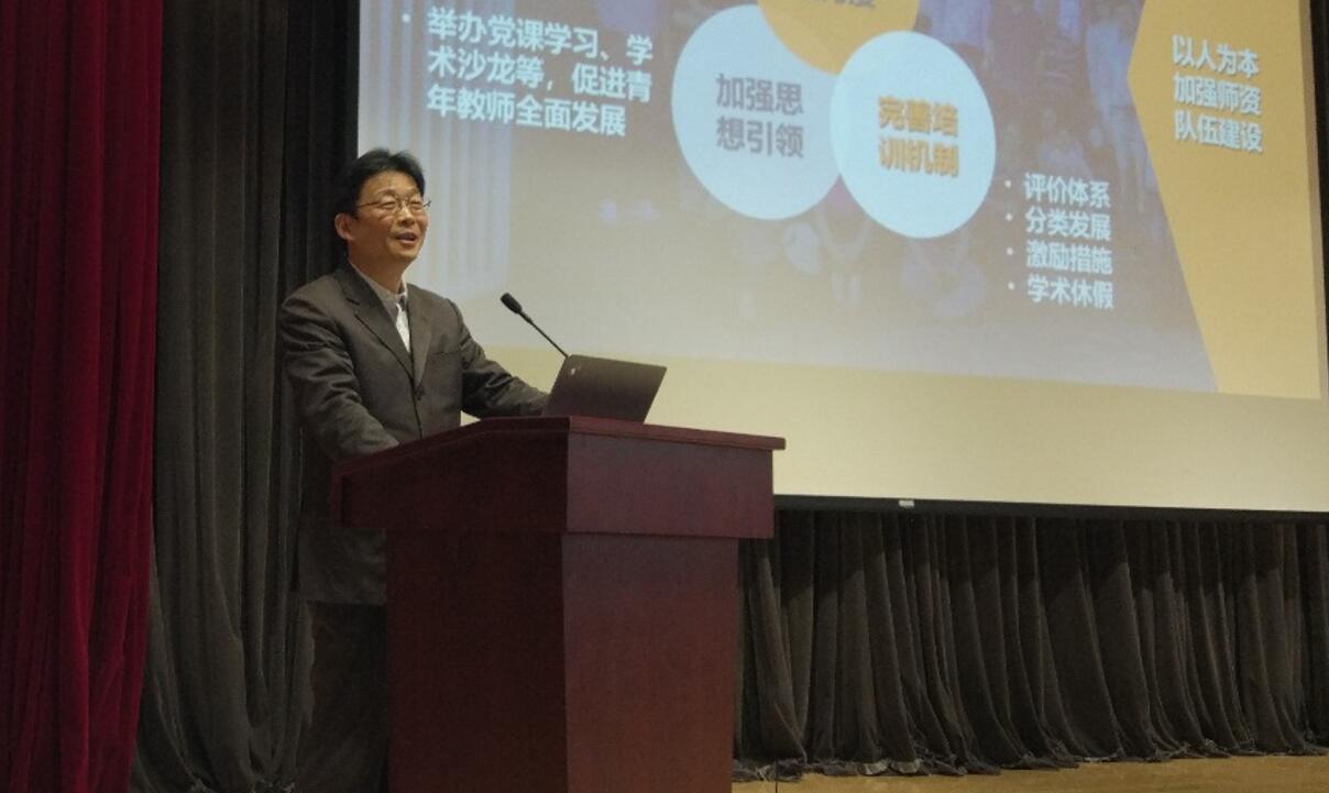 党委书记兼院长杜朝辉作学院领导班子和个人年度工作报告,从班子建设、党风廉政、主要工作和成效、不足及努力方向四个方面总结了学院年度工作。他指出,2017年,在全院教职工的共同努力下,学院各项事业成果显著。他报告了学院在全面从严治党、学科发展、科学研究、人才培养、师资队伍、基地建设等方面取得的成绩,感谢全体教师为学院及学科发展所做的贡献,并提出学院在新一年的主要工作:以“十九大”精神为指引,加强党的建设,为学院发展提供坚强保障;把教书育人、立德树人作为学院的中心工作,强化价值引领,提升人才培养质量;面向学术前沿,对接国家重大需求,取得高水平、原创性的学术成果;凝练学科特色优势,寻找新的学科增长点;加强对优秀青年人才的引进培养,建设高水平师资。他希望全院教师凝心聚力、开拓创新,全面推进世界一流学院和一流学科建设。
