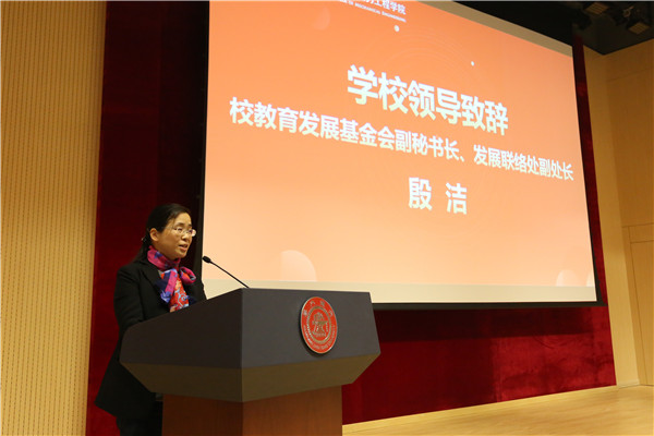 殷洁代表学校致辞,首先介绍了威尼斯9499登录入口教育发展基金发展历程和现状,未来发展改革方向。她代表学校向设奖单位表示由衷感谢,同时向获奖同学表示祝贺。希望获奖同学谨记饮水思源爱国荣校的校训,学会感恩,用好每一笔奖学金,将所获奖学金助力学习与科研,发挥最大用处。