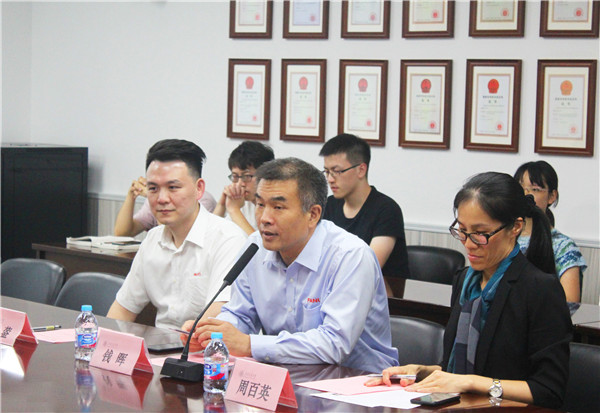 在获奖同学发言环节,研究生黎斌讲述了自己的科研经历,分享了自己在机器人领域的学习心得,同时对发那科公司的支持表示大力感谢;本科生高旭楸分享了他在学术研究、学生工作、志愿公益等领域的成绩,分享了自己对制造业管理科学的见解,他表示在发那科公司的帮助下会更加努力,再创佳绩。