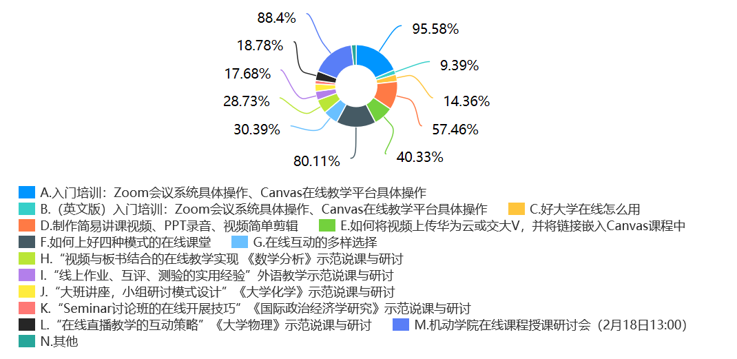 学院提前谋划、全面筹备,从上层设计到具体政策为教师“排忧解难”,为在线教学提供有力保障。针对担任教学任务的教师多次组织调研,了解教师参与校院在线教学相关培训情况、师生交互手段等,掌握线上教学的实际需求与准备情况,并根据调研情况有针对性地组织教学发展分中心、督导组开展教学指导类、系统实操类等专题培训,分类召开专题研讨会议,为教师提供全面的在线教学指导与建议。针对全体学生调研在线教学网络硬件情况,排摸在线教学期间有困难的学生,积极讨论帮困方案,对经济困难的同学提供流量包补助支持,为线上教学做好充分准备。