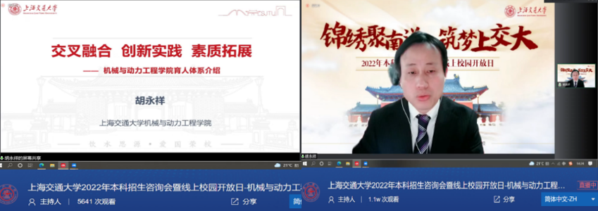 线上宣传视频展播环节,考生及家长充分领略了学院浓厚的科研学术氛围、先进的实践教学环境。杜朝辉从历史沿革、师资队伍、学科专业、科学研究、人才培养、国际化办学等方面介绍了学院整体情况,展示了学院百年发展历程、办学成果、特色文化等内容。