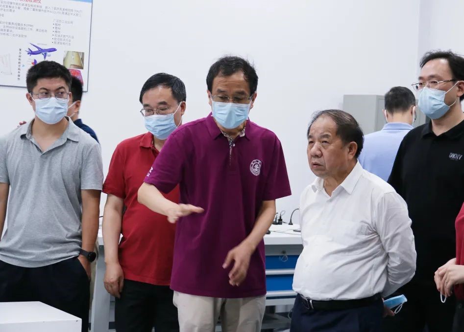 在智能制造功能平台航空航天智能特种加工技术研发中心,林校长了解了航发涡轮叶片制孔智能制造生产线研发的最新进展,重点询问了项目的培育计划等,勉励团队再接再厉,为航发制造领域做出更大贡献。