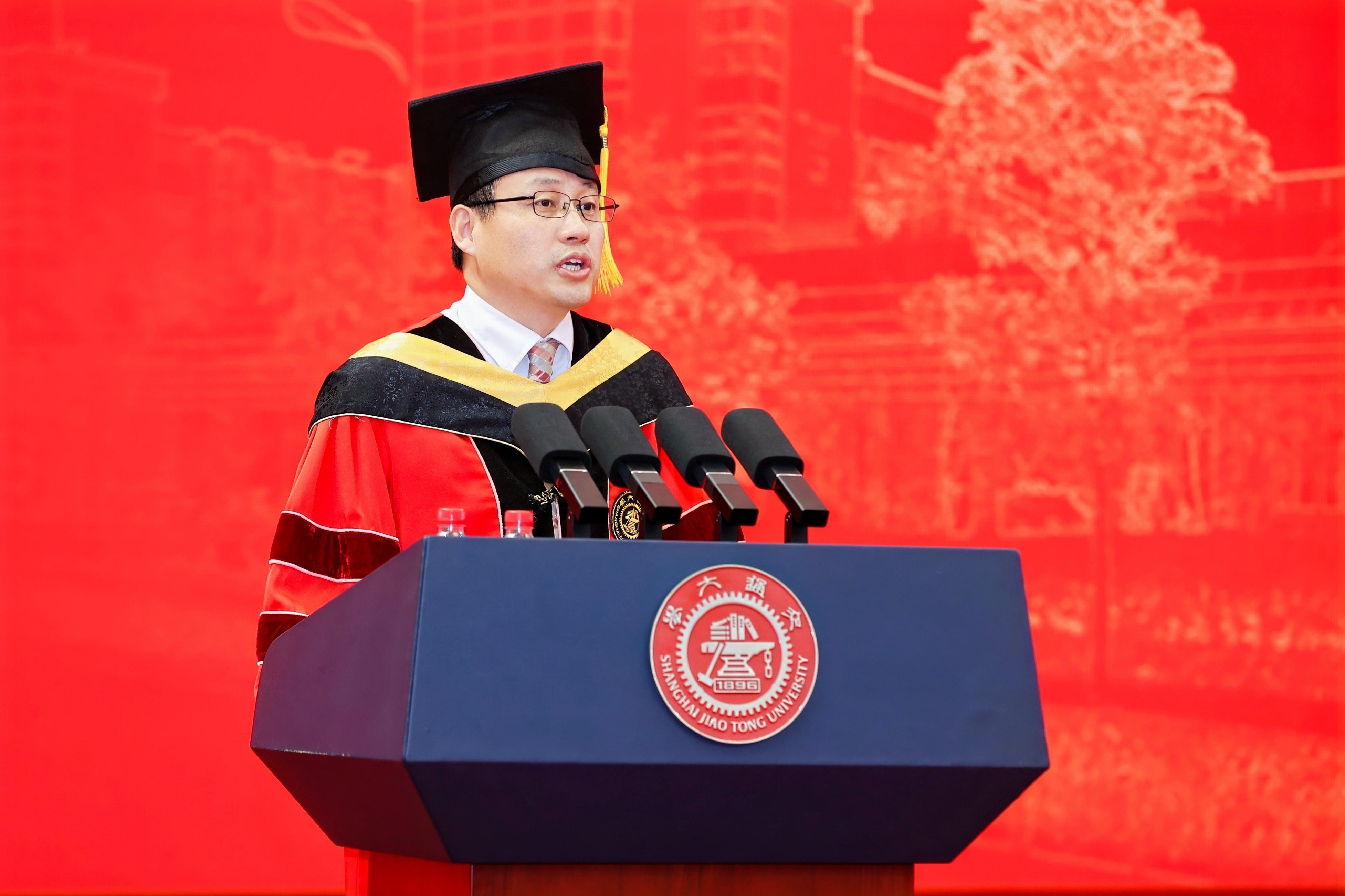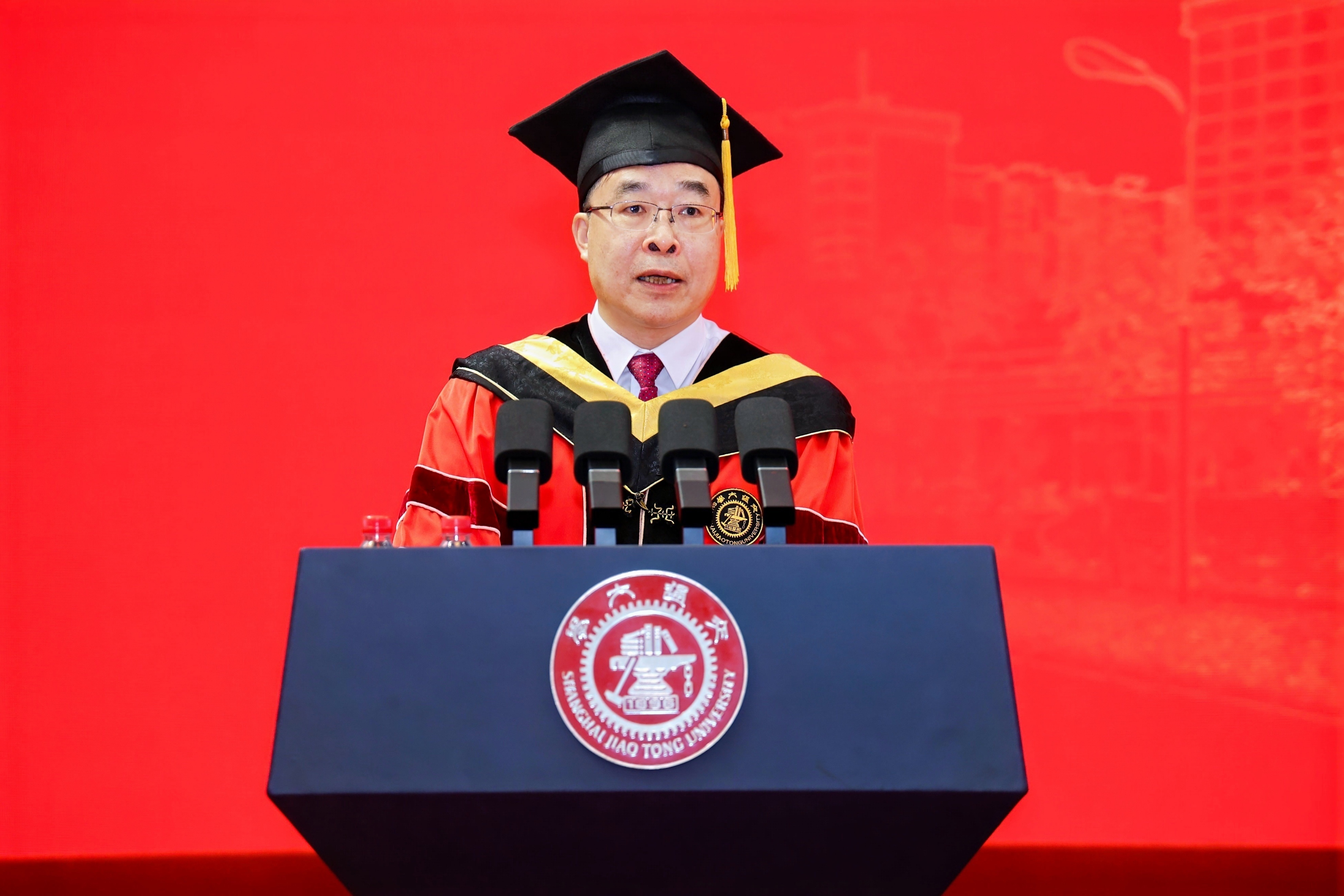奚立峰寄语毕业生知难而进、迎难而上,以交大为起点,接续奋斗、勇当先锋。他提出了三点期望:一是与国同行、为国分忧,做守正创新的先锋;二是笃行不怠、勇攀高峰,做砥砺前行的先锋;三是不忘其本、慎终追远,做胸怀坦荡的先锋。