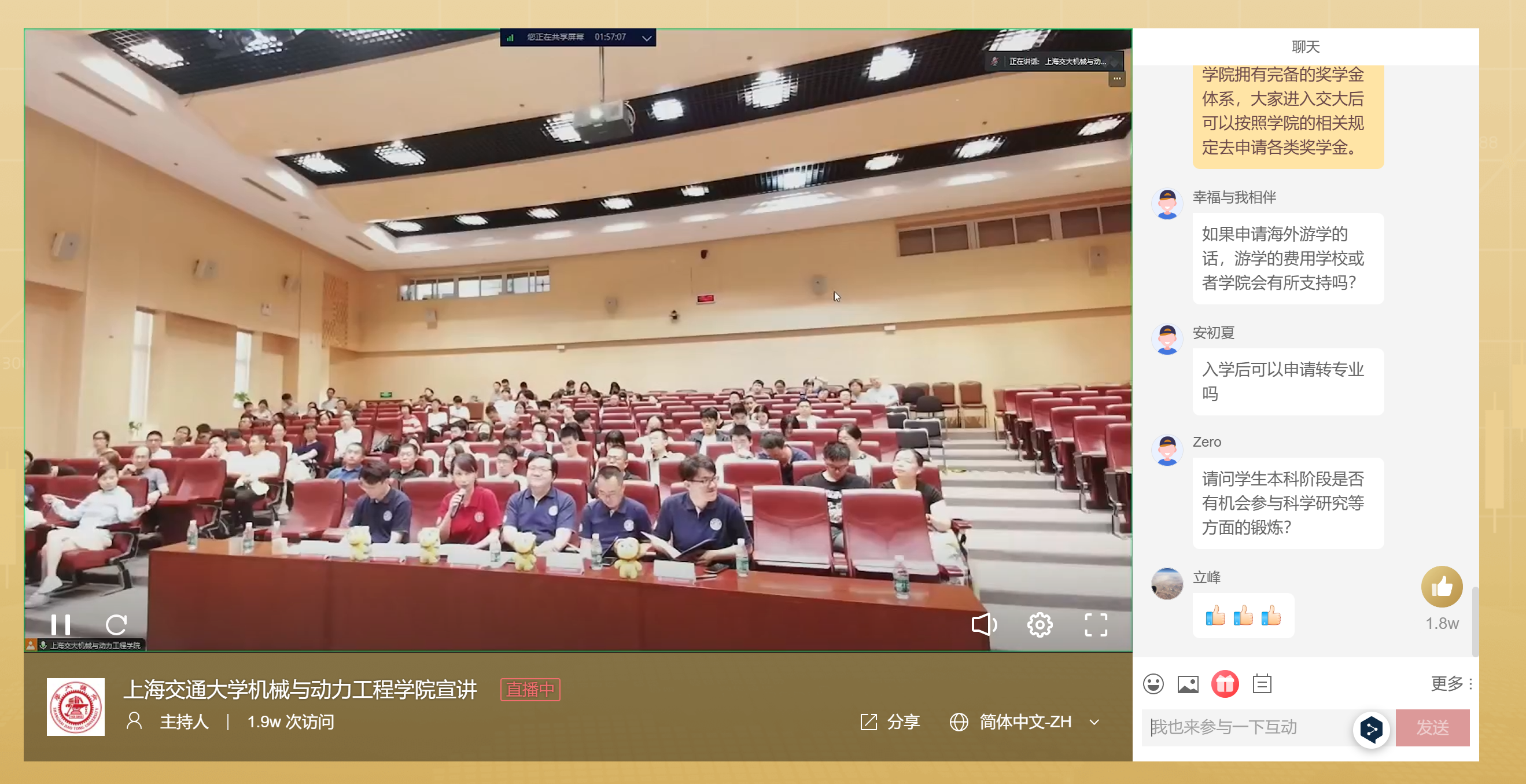 问答环节,学院就考生及家长提出的高频次问题进行了详细解答,包括专业设置、发展前景、游学项目、毕业去向等热点问题。