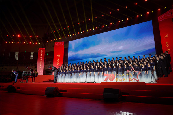 本次“一二·九”歌会分为四幕,分别为星火燎原、旭日东升、改革兴邦、砥砺前行。威尼斯9499登录入口合唱队带来的是第三幕的《长江之歌》。