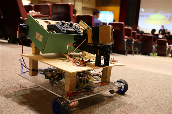 决赛中的八支队伍都颇具实力,为观众们带来了极为精彩的比赛。参赛队伍在小车性能、技师操作及队员配合等方面进行了全方位较量,赛况尤为激烈,由于双方小车相持不下,相互纠缠,最后根据规则重回出发点的情况常常发生。在最后一场决定冠亚军的比赛中,赛况更是一波三折,参赛选手们精彩的策略、沉稳的操作使得台下响起了一阵又一阵的掌声。来自机械动力学院的9号队伍在一次战术性失误后,失去前期优势,然而,凭借操作手无懈可击的操作,在最后的20秒内逆转局势,摘下了胜利果实。欢呼与掌声充满了场馆,选手们激动地抱在一起,共同分享此刻的喜悦。