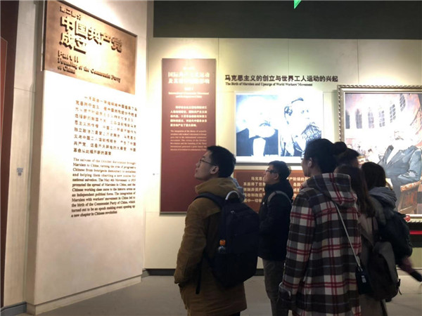 随后的展览共分为两大主题——开天辟地和光辉历程。党员们首先参观了以“开天辟地”为主题的展厅,了解十月革命以来,中国革命的新篇章。十月革命一声炮响,使马克士列宁主义走进了中国,此后,马克思主义与中国工人运动相结合,产生了中国共产党,这是开天辟地的大事变。