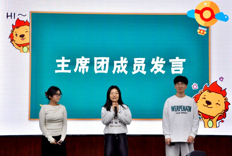 院团委书记戴雨吟老师首先为本次大会致辞。她对团委学生会许以衷心的祝愿,同时向团委学生会的成员们提出三点期望,希望同学们能坚定服务同学的初心,做全面发展的多面手,同时注重团队合作、加强队伍建设。最后,她祝愿团委学生会能够永远年轻,越来越好。