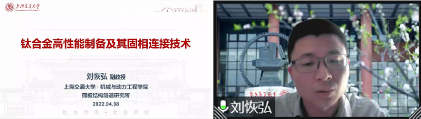 李永兵教授分享了撰写论文的心得体会,从“撰写有范式、评审有标准、提升有规律”三方面介绍了提高科研论文水平的途径,希望大家严格遵守学术道德规范,砥砺第一等品行。刘恢弘副教授作“钛合金高性能制备及其固相连接技术”学术报告,阐述了钛合金和钛合金应用技术的研究背景、最新研究进展和成果。